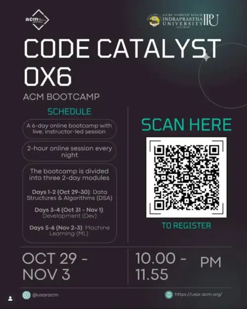 Intensive 6-day bootcamp covering DSA, Web Dev, and ML at USAR.